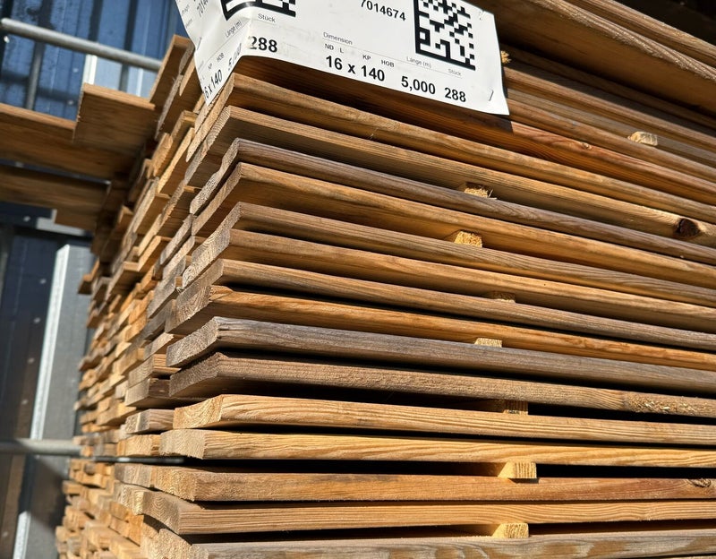Mooie Lariks Douglas planken, ideaal voor schuttingen of andere buitenprojecten.